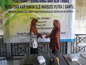Tepat pada tanggal 24 Desember 2019 SLB Marsudi Putra Melepas Salah Satu Guru Tercinta yang bertempat di rumah makan Parangtritis. Pelepasan dihadiri oleh semua guru dan karyawan serta yayasan, dan pada pelepasan ini juga diberikan penghargaan karena pengabdiannya.